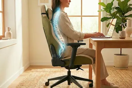 Zaawansowane wsparcie kręgosłupa i naturalna postawa. Pracuj w skupieniu i relaksuj się bez zmęczenia.